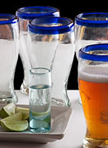 Handmade Mexican glass barware, ceramic tableware, banquet & buffet items,